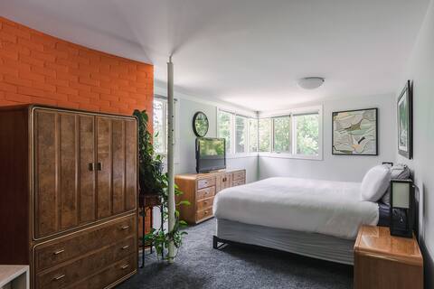 This one of a kind Mid Century Modern suite is centrally located and features unique contemporary architecture, 2 bedrooms and can accommodate up to 4 guests.