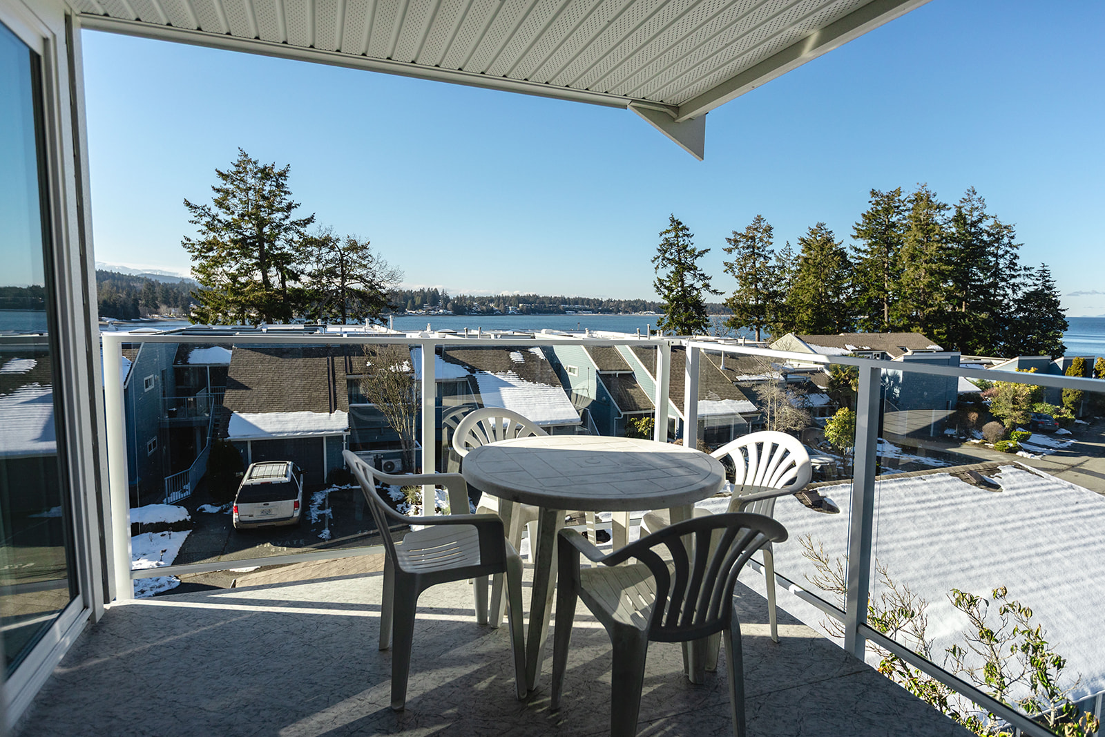 Welcome to the Pacific Shore Corner Suite A with Ocean Views, located at Pacific Shores Resort in Nanoose Bay. This hotel style suite is located on the top floor & boasts panoramic ocean views. Your stay includes access to the resort amenities: pool, hot tub, gym, shared BBQ, & fire tables.