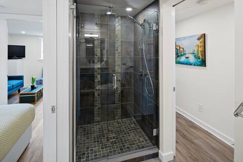 • Bathroom: Stand-up shower with complimentary shampoo, conditioner, and body wash